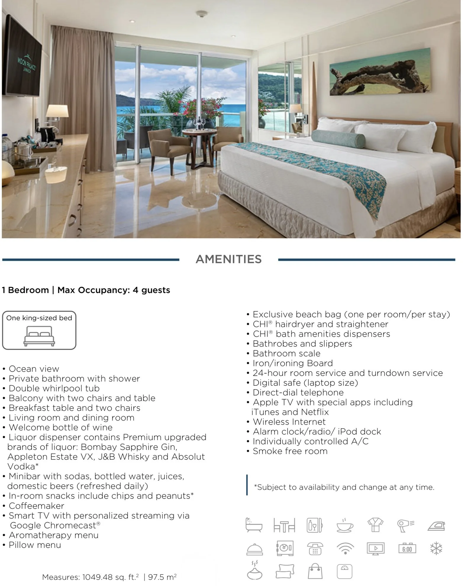 OPTION 4: SUPERIOR DELUXE JUNIOR SUITE OCEAN VIEW - $739USD/PER NIGHT DOUBLE OCCUPANCY (ESTIMATED)