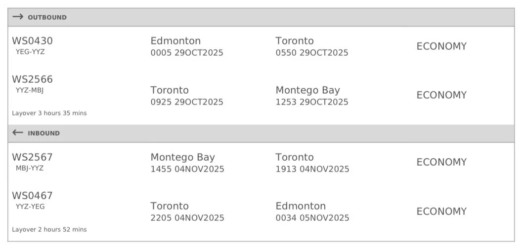We’ve reserved a limited number of group flights from Edmonton to MONTEGO BAY to make travel as smooth and fun as possible! These seats are held especially for our wedding guests, but space is limited — so be sure to RSVP and confirm your spot early.